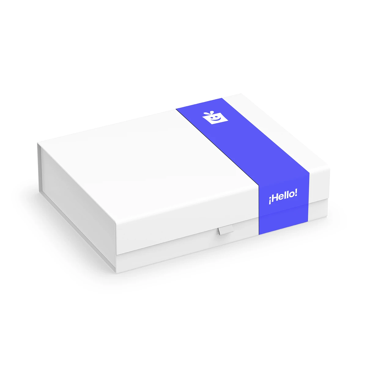 Premium hard cardboard case, includes magnets for automatic closure and printed covering sash. Hard cardboard, perfect for significant gifts.
