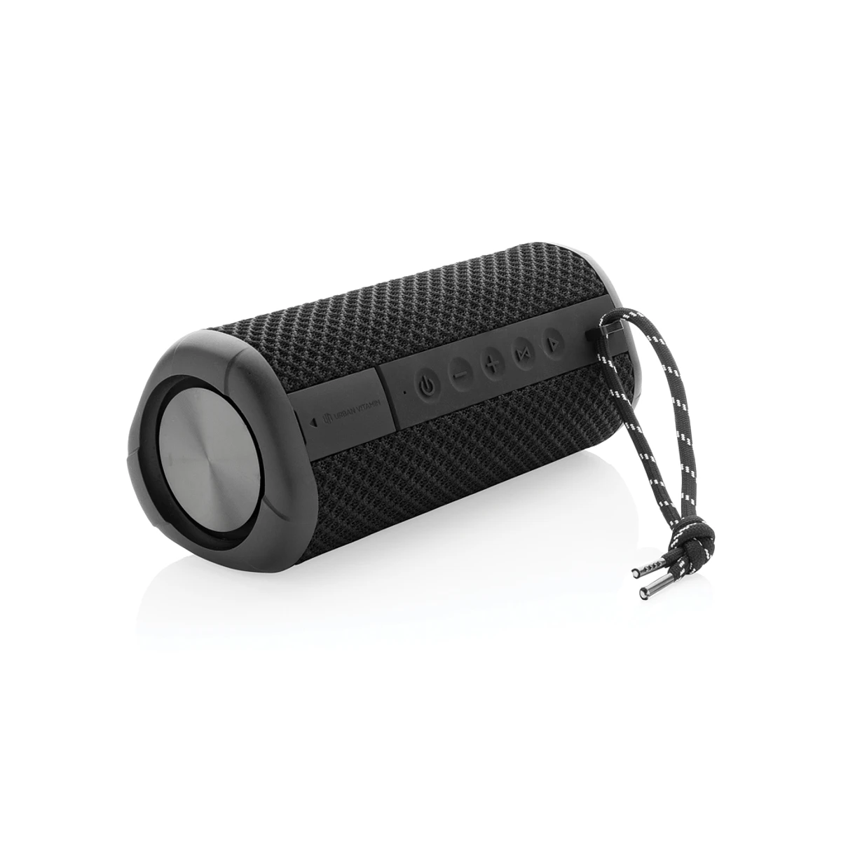 Lleva tu altavoz a donde quiera que vayas. ¿Pasando el rato en la playa? Perfecto! ¿Fiesta en la piscina? Cubierto! ¿Lluvia repentina? No preocupaciones! Tu altavoz es resistente al agua IPX7 hasta 1 metro de profundidad y un máximo de 30 minutos! Después de un día de arena en la playa, simplemente sécalo si está debajo de la ducha. El altavoz de 10W tiene unos graves masivos apoyados por dos subwoofers en ambos extremos del altavoz. El potente sonido es suficiente para mantener una buena fiesta hasta que salga el sol. La tela duradera y la carcasa resistente se asegurarán de que el altavoz pueda soportar un pequeño golpe. Disfruta de hasta 15 horas de escucha! En caso de que recibas una llamada, simplemente responde con el micrófono integrado en calidad clara. Los artículos de Urban Vitamin están fabricados sin PVC y presentados en caja con plástico reducido.