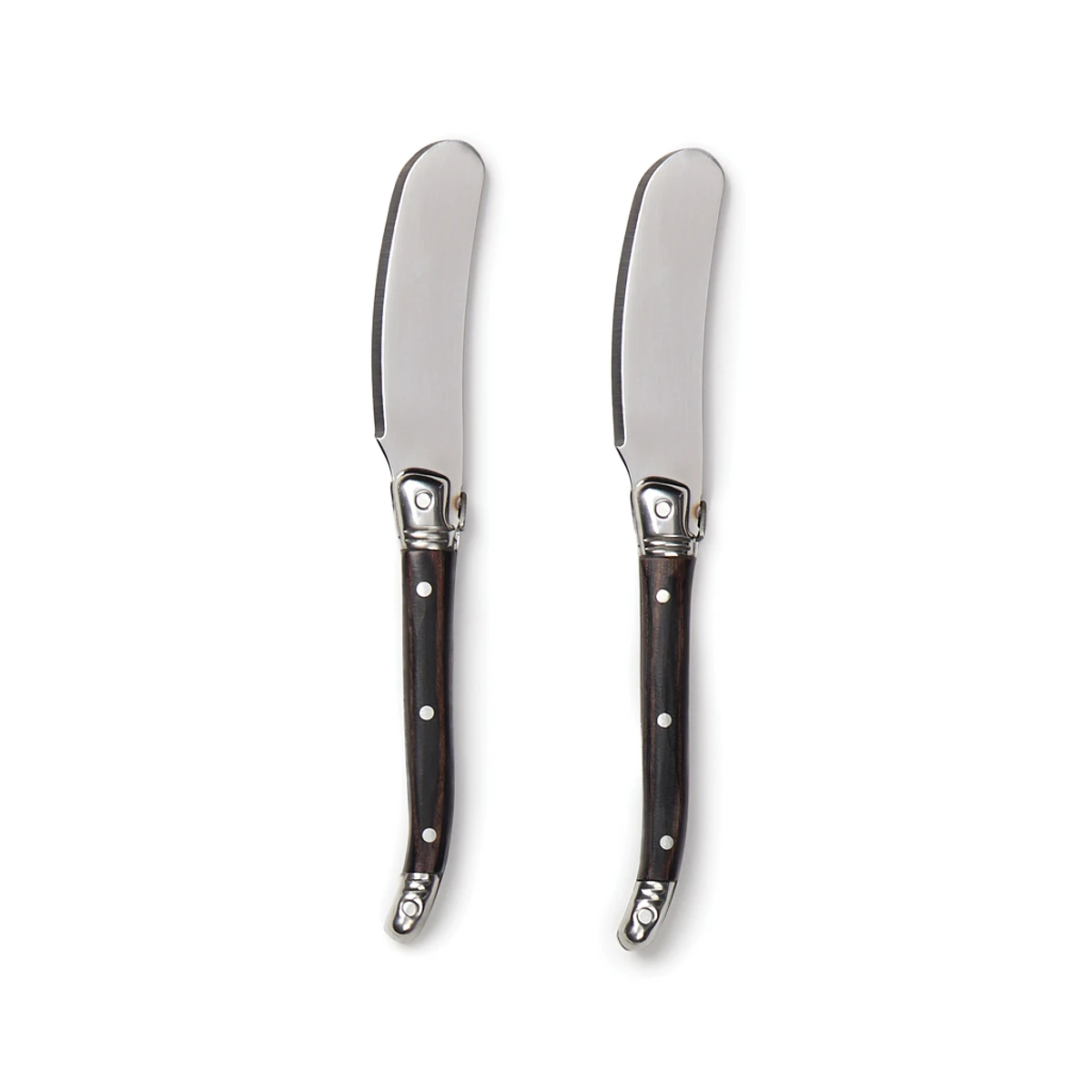 Exclusivo juego de cuchillos para mantequilla de acero inoxidable de 2 piezas. Estos cuchillos son perfectos para untar mantequilla o mermelada en tostadas, bagels, muffins y más. Las cuchillas de acero inoxidable de alta calidad garantizan un esparcimiento suave y sin esfuerzo, mientras que los resistentes mangos de madera pakka brindan un agarre cómodo. El set viene presentado en una exclusiva caja de regalo, lo que lo convierte en un regalo ideal para cualquier ocasión.