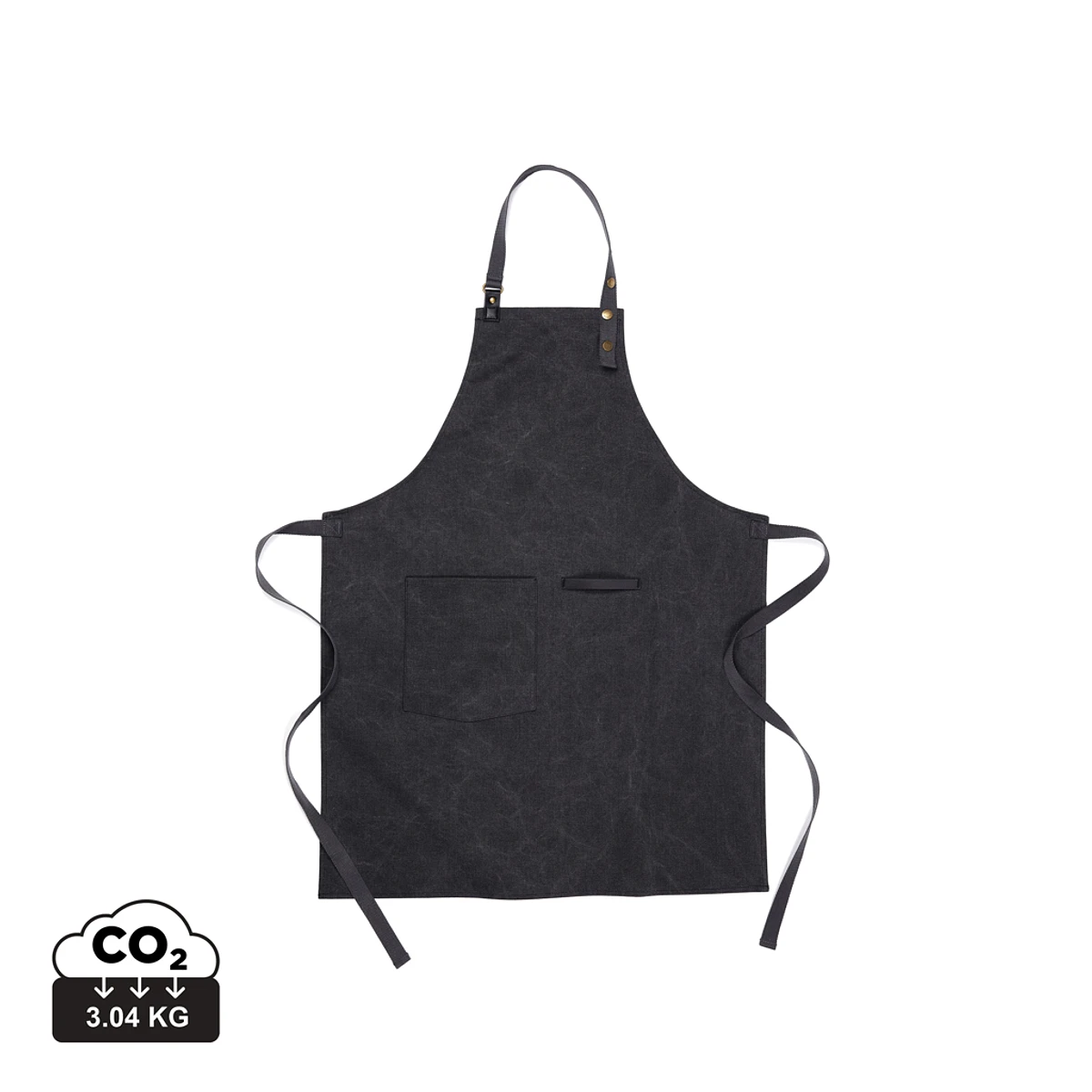 Delantal fabricado en 40% poliéster reciclado y 60% algodón reciclado. Este elegante delantal es un práctico accesorio de cocina con un bonito diseño. No hay necesidad de renunciar al estilo incluso cuando estés cocinando la cena! El delantal cuenta con un bolsillo delantero y un lazo para colgar utensilios o paños de cocina, para que tengas todo a mano cuando estés cocinando. El delantal tiene una banda para el cuello suave y ajustable para mayor comodidad.