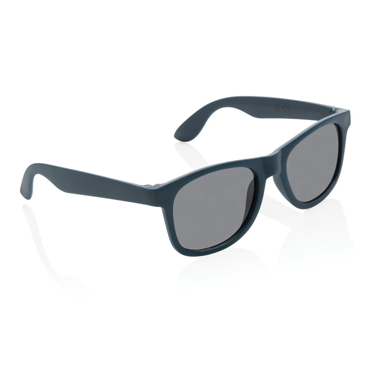 Gafas de sol fabricadas con montura de PP reciclado certificado RCS. El contenido del marco es 100% reciclado. Contenido reciclado total: 66% basado en el peso total del artículo. La certificación RCS garantiza una cadena de suministro completamente certificada de los materiales reciclados. Los lentes son de acrílico ahumado y cumplen con EN ISO 12312-1, UV 400 y CAT 3. Presentados en una funda de papel kraft FSC®.