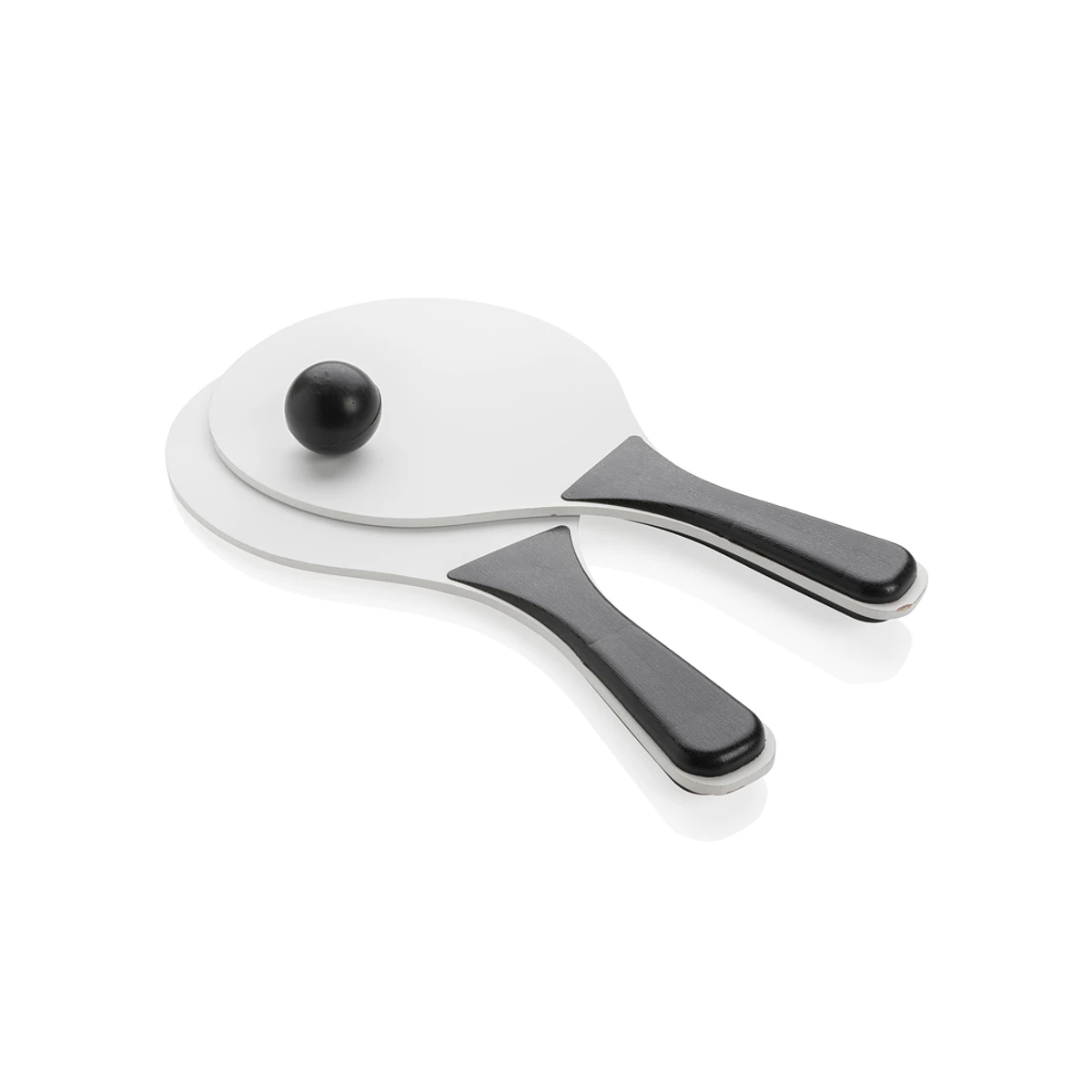 Juego de pelota de playa de MDF con asa de PP. Presentado en su red que incluye 1 pelota.