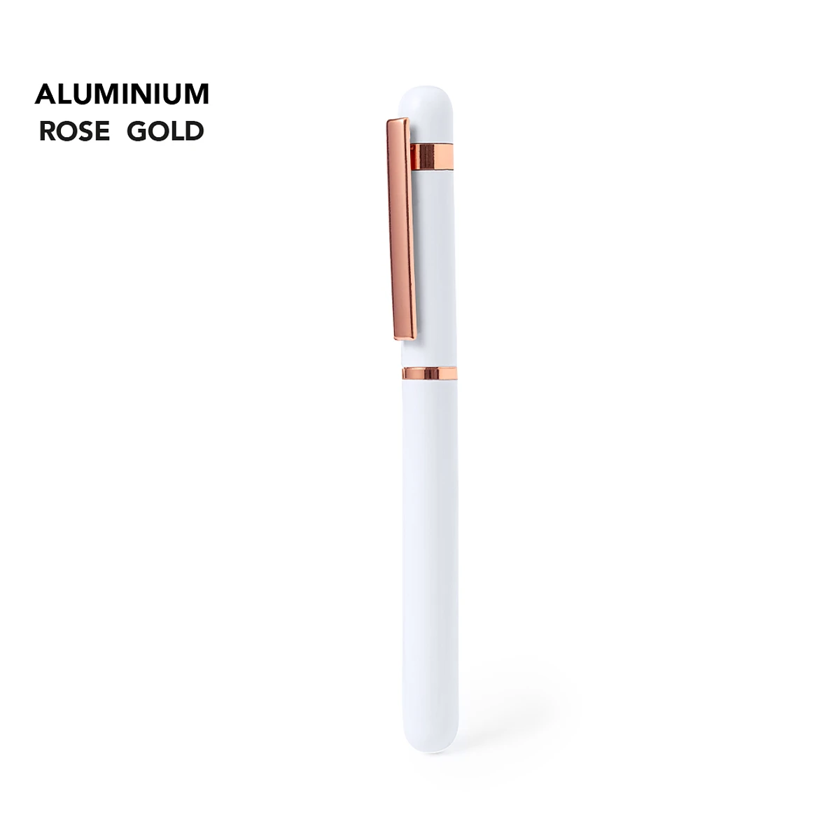Elegante roller especialmente diseñado para el marcaje en láser con logotipo en color rosado. Con clip metálico y detalles plásticos en acabado rosado. Con cartucho jumbo, en tinta azul y cierre con capucha. Disponible en dos distintivos colores.Presentado en elegante caja de diseño negra.